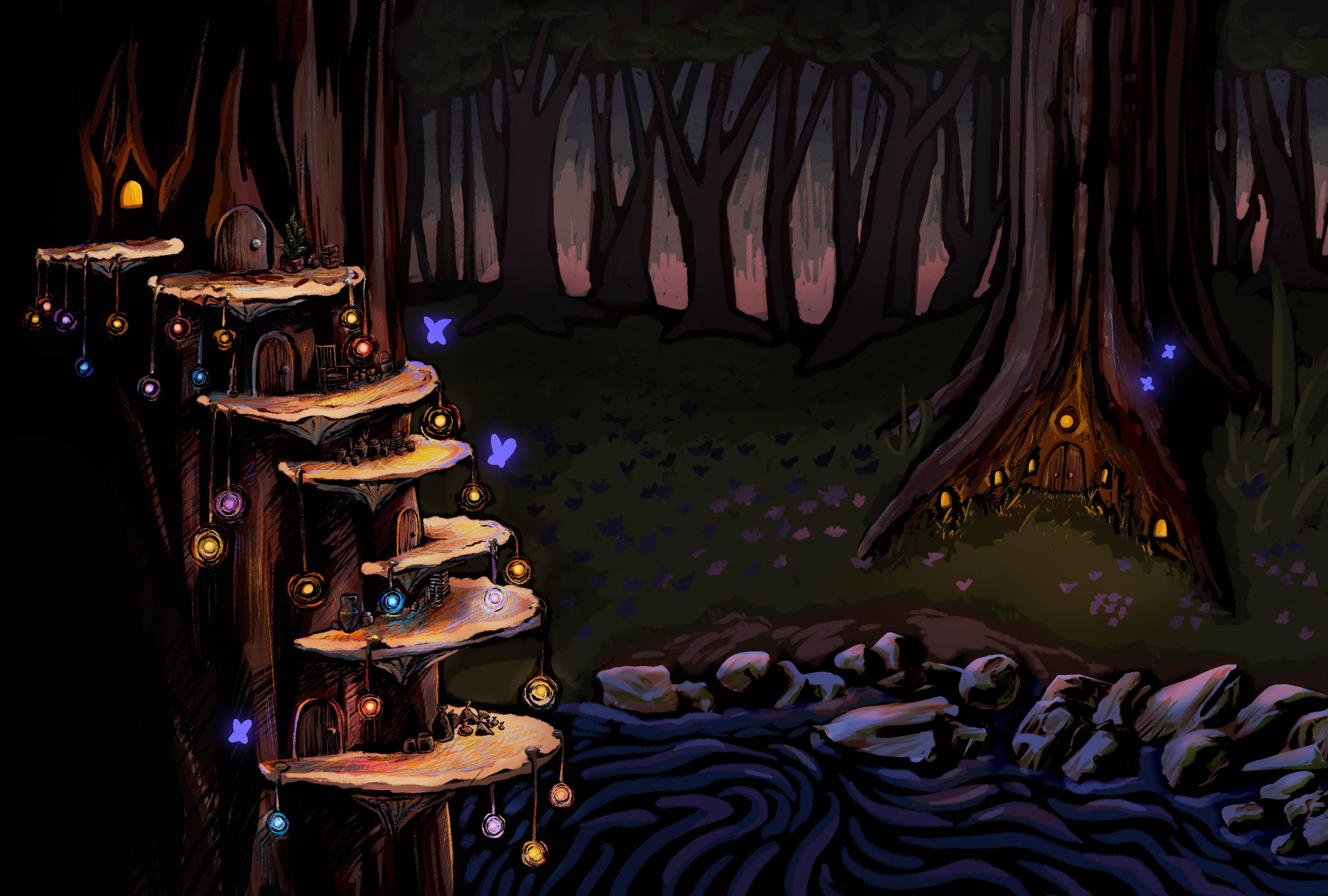 Jules Krueck is a Denver-based illustrator graduating with a B.F.A. in Illustration from the University of Colorado Denver. Since childhood, Jules’ work has been inspired by animated films and television. They aim to work as an environment designer for animated media, where they can create immersive settings that play an active role in storytelling. Their thesis focuses on the environment design and prop design for 'Veridalia', an animated children’s series concept that centers around a community of fairies inhabiting the distant planet called Veridalia.
